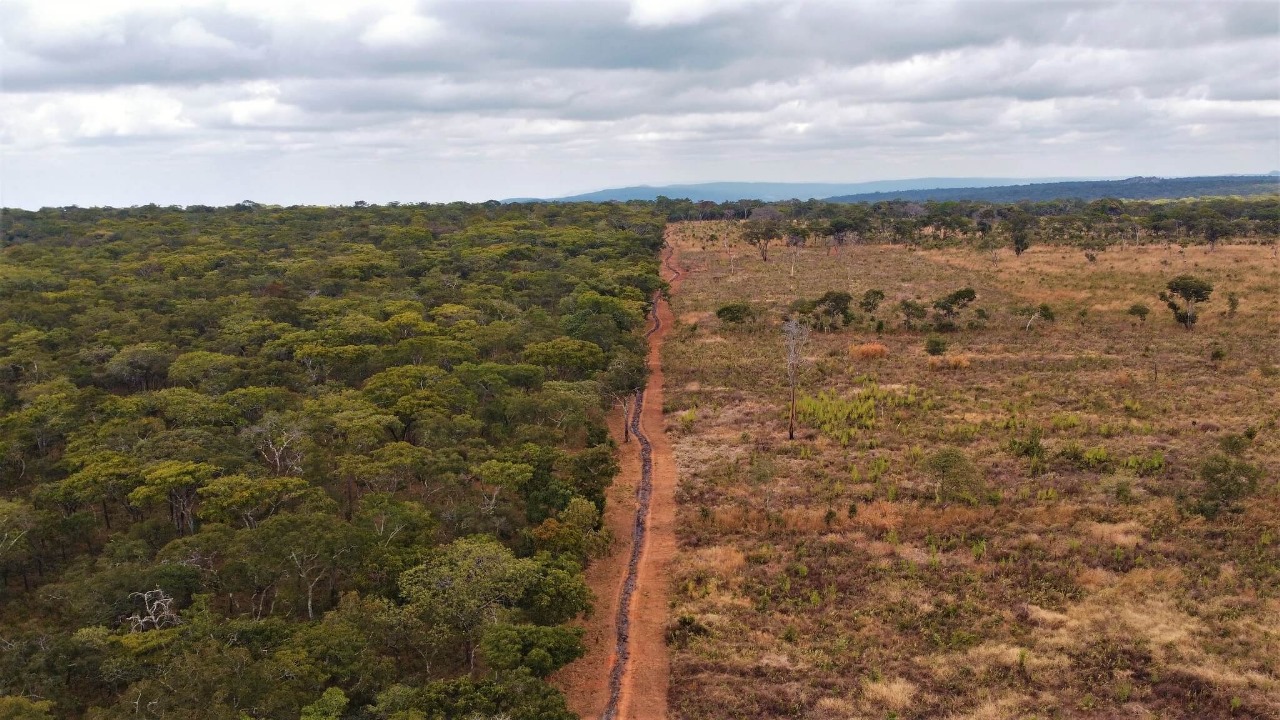Duas realidades da floresta de miombo: à esquerda, área conservada; à direita, miombo degradado em processo de regeneração.